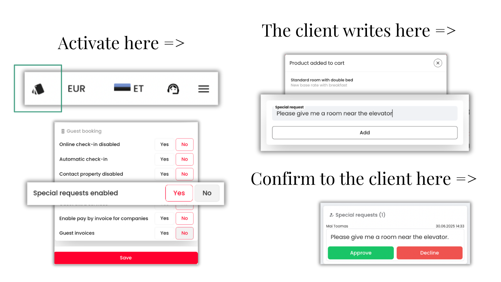 – In the “Guest booking” module, select “Special requests enabled” -> “Yes!”